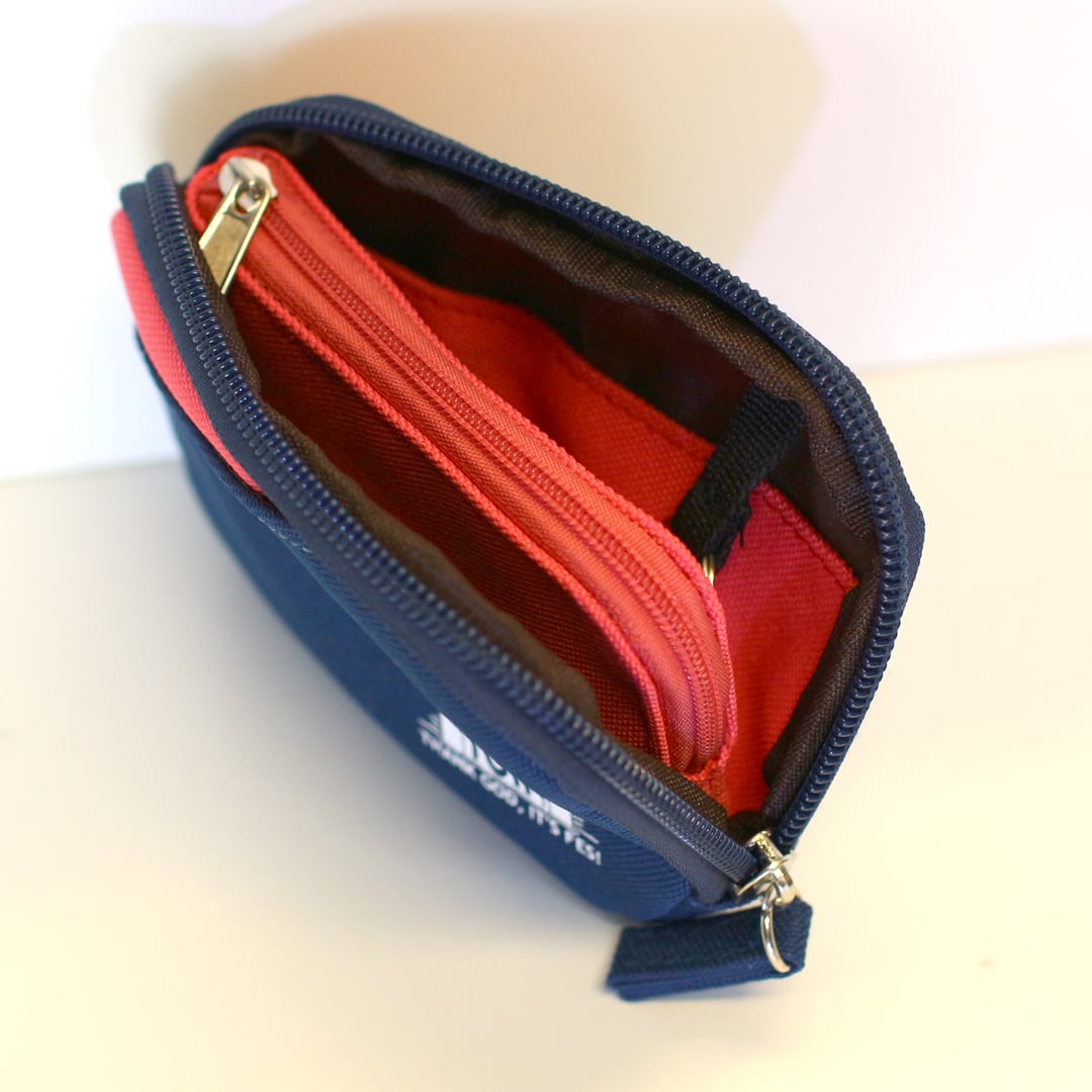 内側にはコイン用ファスナーポケット、カード用のスリットポケット、キーリングも付属しています。